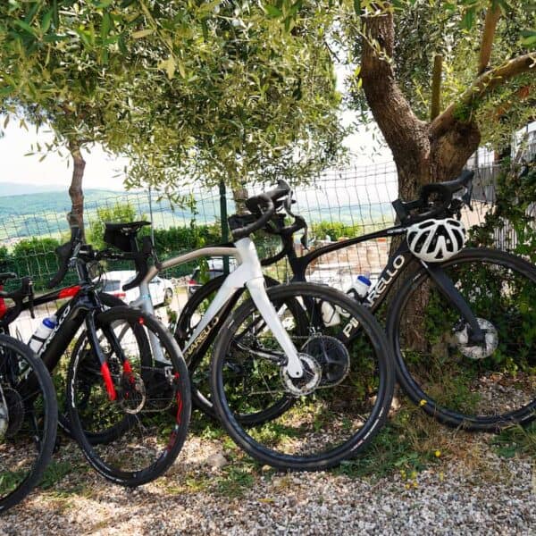 Arrival, welcome and briefing. Once you arrive, you’ll have a chance to settle in and then have your bike fitting and a bike review on shifters, braking, riding in Italy, etc. You’ll receive your kit and water bottles and tour the Bike Room, where you’ll conveniently store your gear and find water, cycling food, and electrolytes.